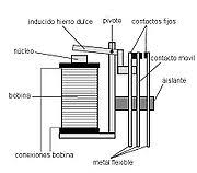 El electroimán hace bascular la armadura al ser excitada, cerrando los contactos dependiendo de si es N.A ó N.C (normalmente abierto o normalmente cerrado). Si se le aplica un voltaje a la bobina se genera un campo magnético, que provoca que los contactos hagan una conexión. Estos contactos pueden ser considerados como el interruptor, que permite que la corriente fluya entre los dos puntos que cerraron el circuito.